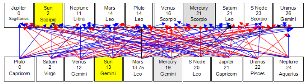On Election Day 2016, Transiting Pluto was in Capricorn and transiting Venus was in Sagittarius-Capricorn (Venus was changing SIGNS and thus taking on both the qualities of Sagittarius and Capricorn). Planets in the same SIGN only need direction for the energy to flow and they get this by the 120-degrees "positive" aspect or the 90 or 180-degrees "negative" aspects; being in the same SIGN is just like wiring that needs a connection. The wiring was in place during the Election, and the direction was determined by Hillary Clinton’s natal planets Pluto 90-degrees Venus.